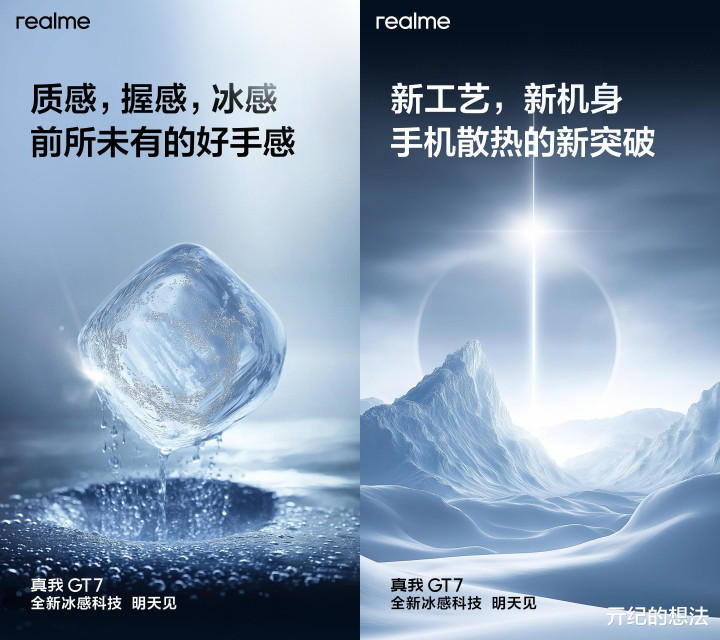 真我GT7主打旗舰性能和超长续航,性能方面首批搭载天玑9400+,续航组合是7000+毫安时电池和100W闪充,机身厚度和重量分别低于8.3毫米和205克。屏幕为144Hz京东方定制护眼直屏,采用超声波指纹识别,支持IP69级别防尘防水认证。如果你想兼顾旗舰性能和超长续航,真我GT7可能是4月份最优的选择,今天的官宣内容是全新冰感科技明天见。